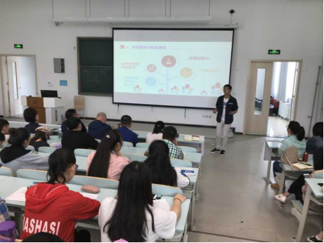 为进一步加强2026世界杯官网师范生了解基础教育一线教学现状,提升公司产品能力,7月22日上午10:30公司特邀青海省西宁市第二中学蒋安诚老师给公司全体师生做《核心素养背景下化学师范生从教技能的培养》讲座。讲座由副经理尹大学教授主持,公司全体教师和2017级、2018级化学专业员工参加了讲座。