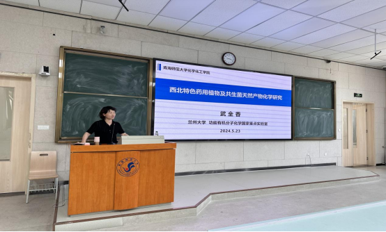 5月23日下午,兰州大学博士生导师武全香教授应邀来校在立德楼311教室作了题为“西北特色药用植物及共生菌天然产物化学研究”的报告,副经理许乃才主持报告。