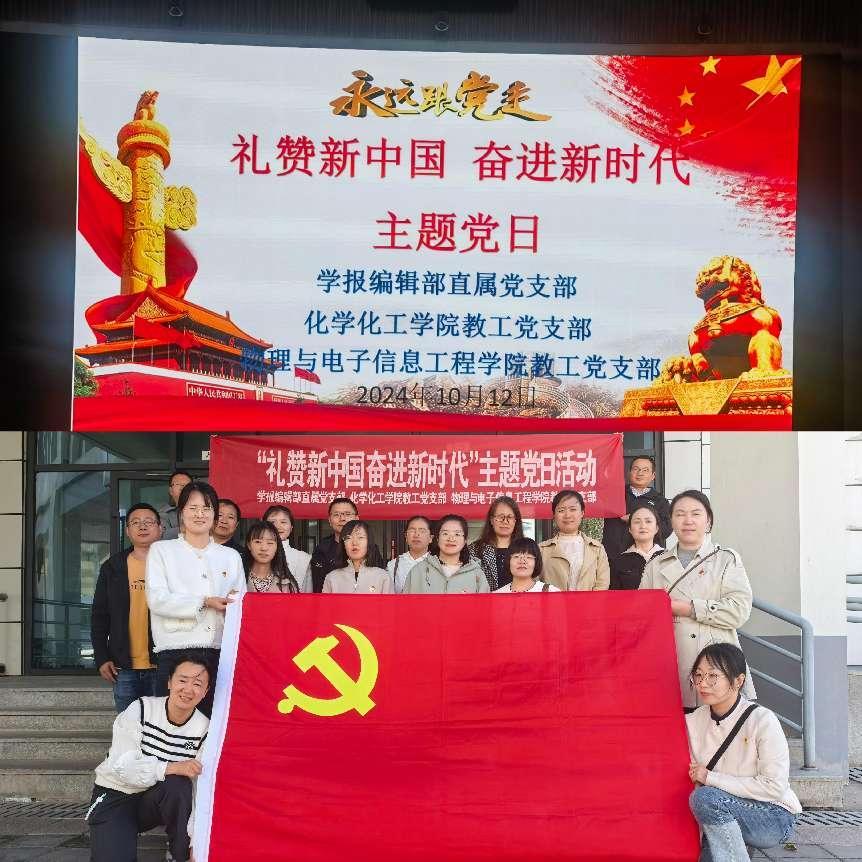 10月12日下午,公司教工党支部与物理与电子信息工程公司教工党支部、学报编辑部直属党支部在马克思主义公司VR教室联合开展“礼赞新中国,奋进新时代”主题党日活动,活动由公司党总支副书记鲁芳主持。