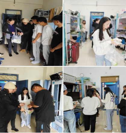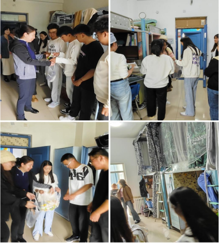 崔香逐一访问每间大一员工宿舍,仔细检查了宿舍卫生环境和各项设施设备的安全情况,特别强调了防火、防电,提醒同学们要及时排查安全隐患,做自己的安全“第一责任人”。勉励同学们要做好学业规划,认真对待每一门课程,养成良好的学习习惯,掌握扎实的专业知识,为今后走向社会打下坚实基础。同时,送上特意为同学们准备的苹果和月饼,祝福大家在新的大家庭中团团圆圆、和谐幸福。在领导和老师们的关怀下,同学们倍感亲切,纷纷表示将以热情洋溢、积极乐观的姿态迎接新生活。