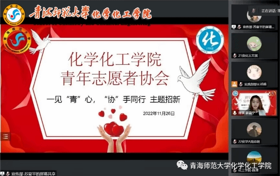 为不断继承和发扬“奉献、友爱、互助、进步”的志愿服务精神,加强志愿者协会队伍建设,提高协会整体竞争力和服务水平,公司青年志愿者协会于11月26日在线上开展纳新工作。出席本次会议的有团总支书记陈渭老师,会议由公司青年志愿者协会理事薛嘉宁同学主持。