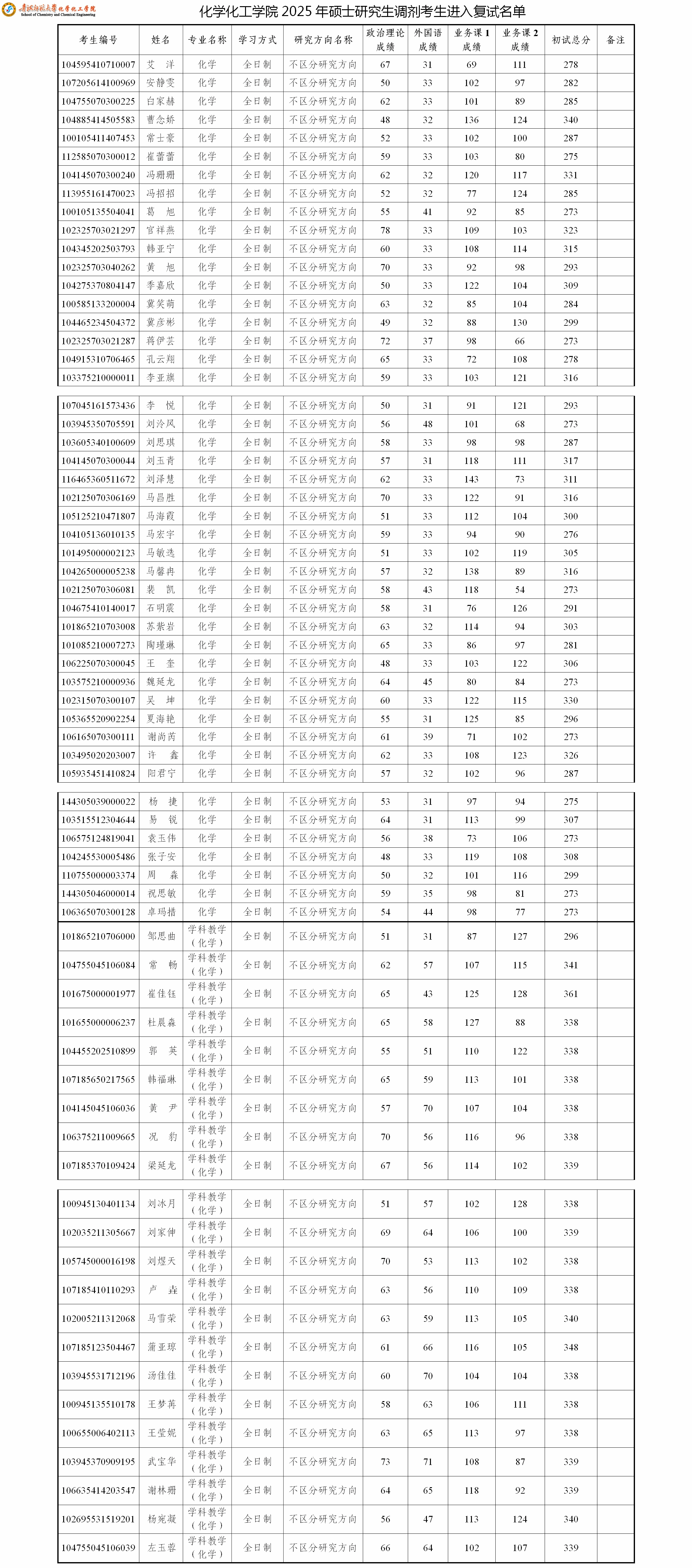 附:化学化工公司2025年硕士研究生调剂复试考试名单(提供图片&PDF两种方式)
