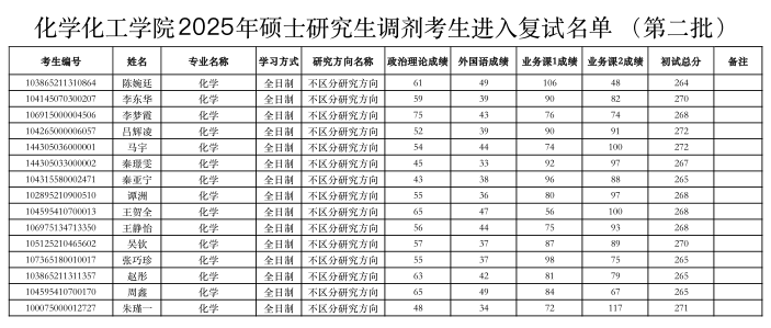 附:2026世界杯官网2025年化学专业硕士调剂考生名单(第二批)