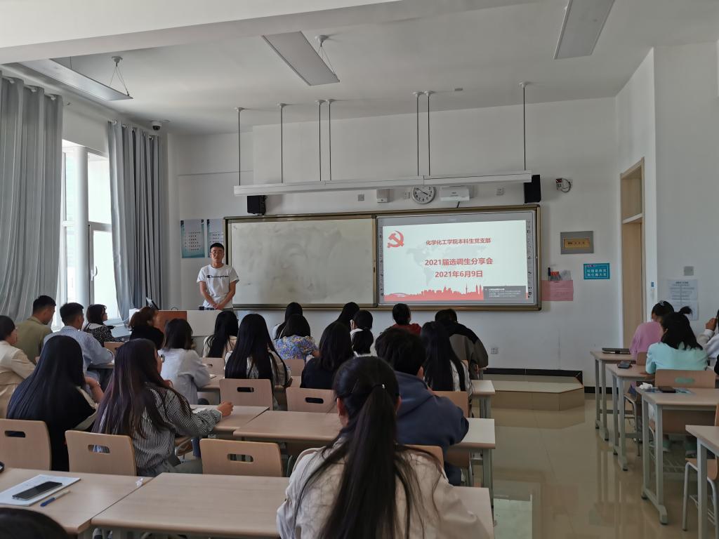 党课结束后,本科生党支部书记史正晨主持召开2021届选调生分享会,由成功考取选调生的9人依次进行经验交流与分享,他们以个人职业选择、备考过程及走上工作岗位后的计划与目标等内容发言,希望在校生发扬公司勤奋好学的优良学风,传承公司精神,担当历史使命,不断完善自己。