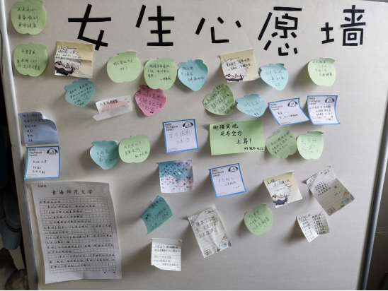 在“我想对自己说”活动中,女生们将内心所愿与追求目标通过文字的形式表现出来,展现了女生努力向上、阳光积极的思想内涵。