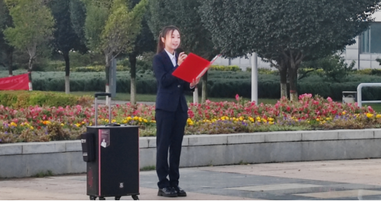 仪式上,23级应用化学班王梓盈同学进行国旗下演讲。她号召全体同学作为新时代老员工,要以热爱为底色,以专业为本色,坚定文化自信,秉持开放包容、坚持守正创新,为推动文化繁荣贡献青春力量。